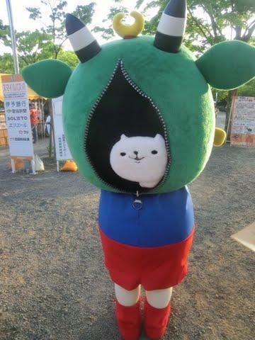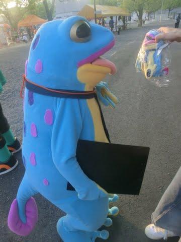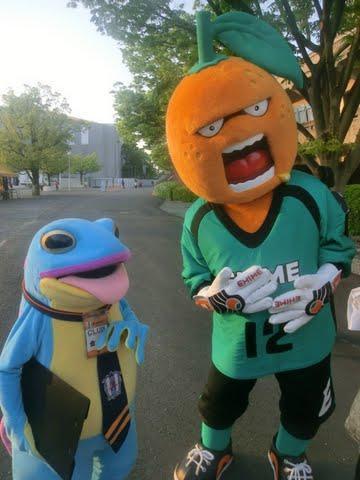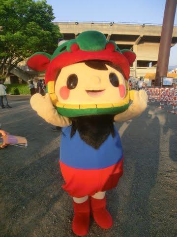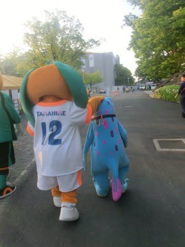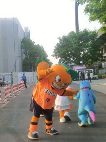 この日ゆるキャラ100m走にエントリーされたキャラクターたちと交流