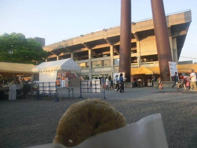 ベンチに座って食べていたらトミッチが通ったのでトミッチ~♪って手を振ったら