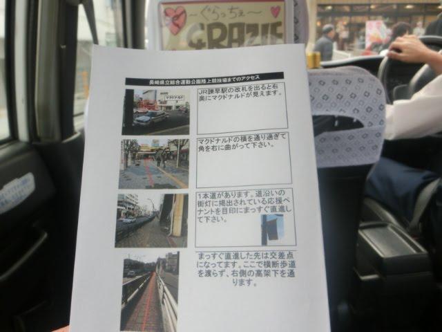 スタジアムまでの道案内を書いた紙を若い女性スタッフさんが配布してくださいました。