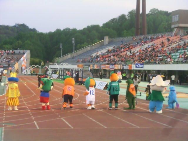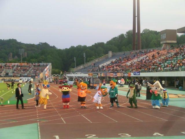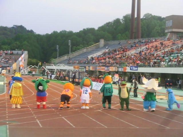 よくJリーグのフォトニュースで見かける愛媛のこの「ゆるキャラ100m走」がこんな時間に行われているのは