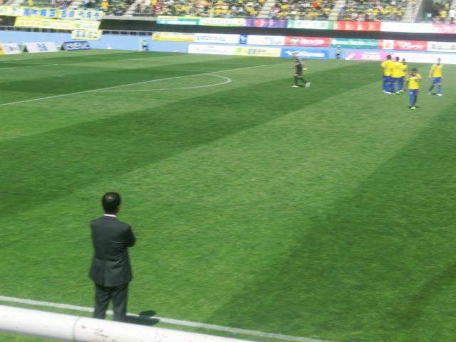 後半の円陣が終わったあと珍しくピッチサイドで選手が来るまでベンチに入らず待っていた監督。