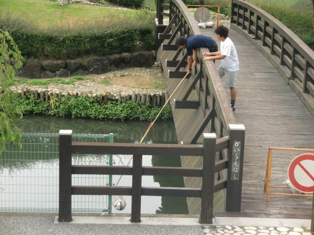 先ほど池に落ちたボールを拾った学連のコも戻ってきて