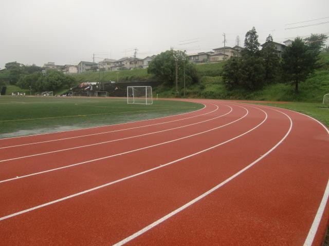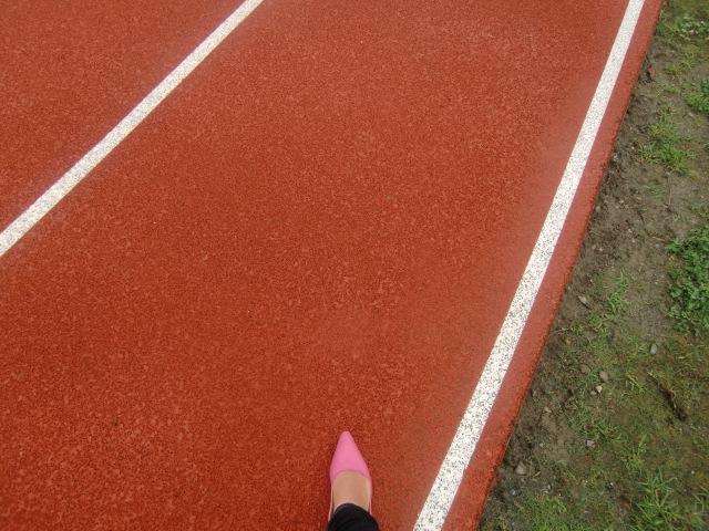 観客席のあるバクスタへは陸上のタータンの上を歩いて向かいます(笑)