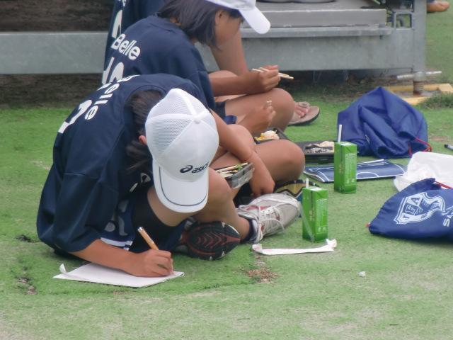 兵庫県から来ていたどこかのサッカーチームの女の子たちは、お弁当を食べながらも、みんなで一生懸命サッカーノートを取っていました☆