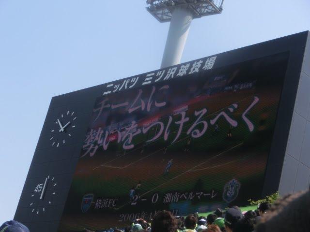 横浜FC vs湘南@ニッパツ☆レポ2・コレオ準備/アップ開始/煽り映像