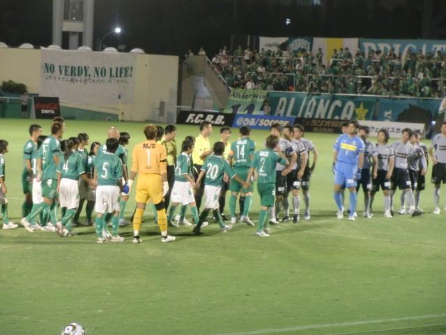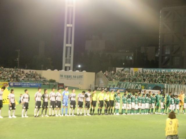入場が終わって整列したとき、岐阜の選手がヴェルディ側に、ヴェルディの選手が岐阜側に並んでしまった!(笑)