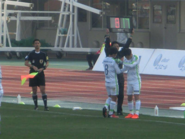 ユニを脱いで歩いているのが交代した秋野選手