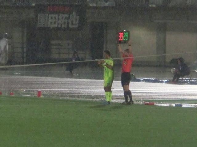 スタジアム上空に、遠くで轟く雷の音が聞こえてきた90分+4分