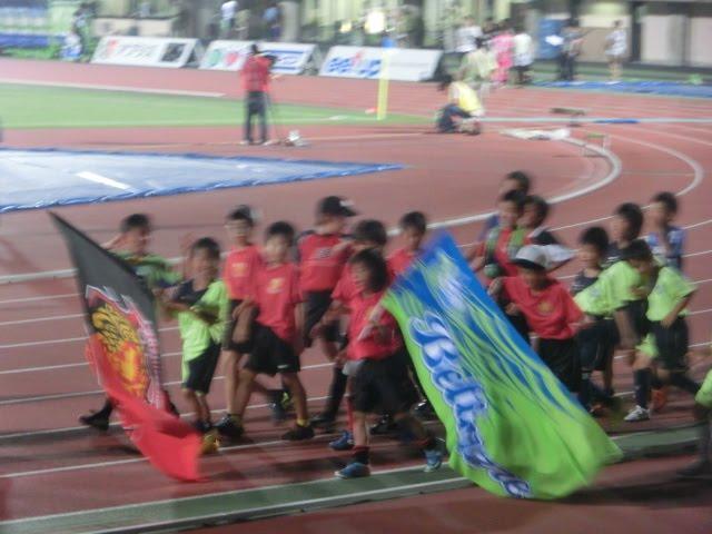湘南ベルマーレのキッズと福島ベルマーレのキッズが仲良く場内一周