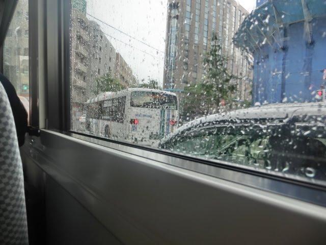 16時10分博多バスセンター発のシャトルバスを待つあいだに土砂降りになり