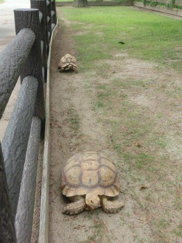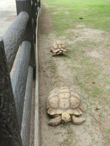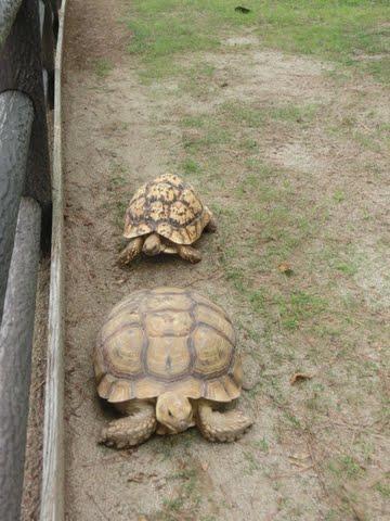 『うさぎとかめ』ならぬ、亀さん同士の競争を見て