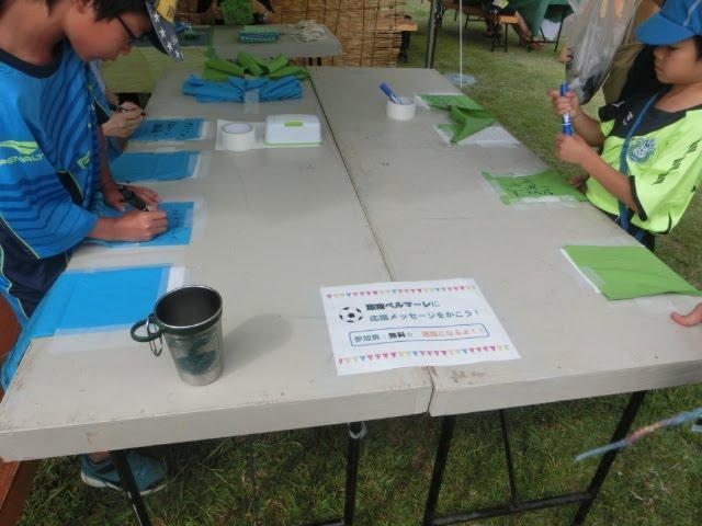 ベルマーレカラーの布にメッセージを書くと