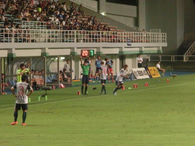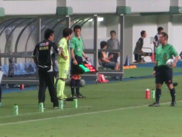 前半は試合前の集中豪雨により、水田のようだったピッチも後半には乾いてきて