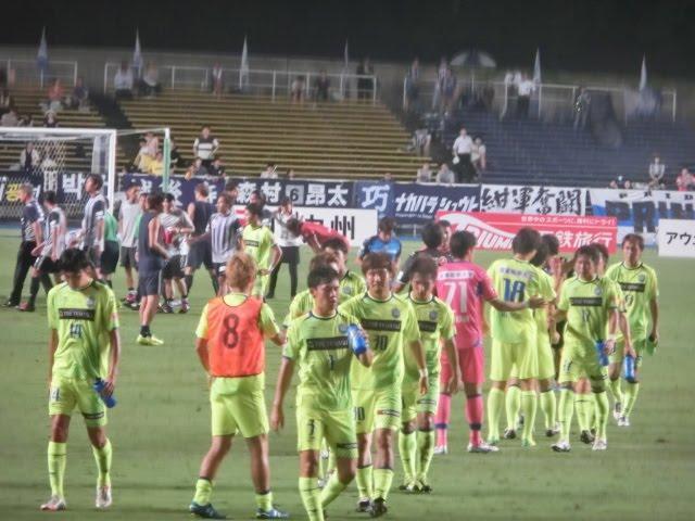 ピッチに座り込むアビスパ福岡の選手を包み込んだ福岡サポーターの歓声。
