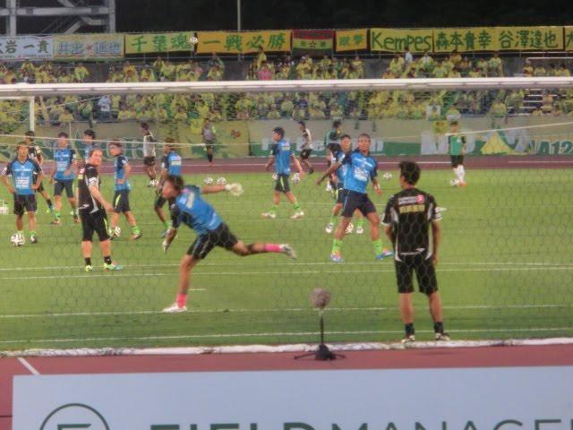 前に相手DFが居なくても、ほとんどの選手のシュートが枠を外れまくる(笑)試合前のシュート練習に
