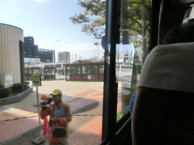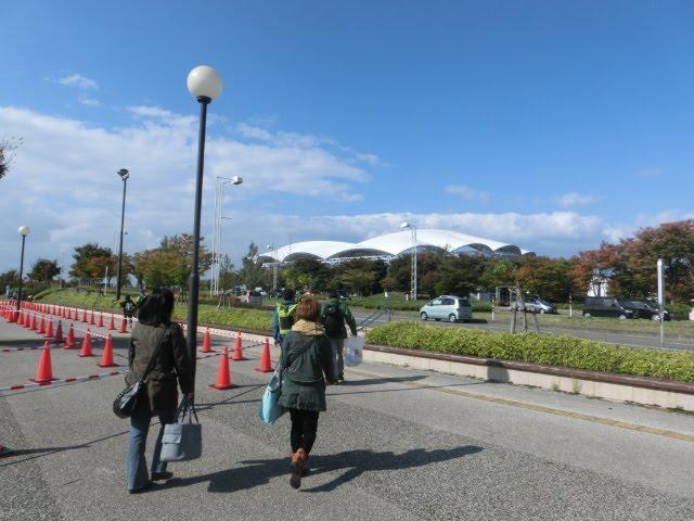 バスが到着するのは大きな道路を隔てたハードオフスタジアム(野球場)のほうですが