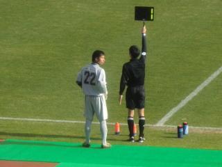 会場にいる誰もが「入った〜!」と思った瞬間に突然ゴ−ルポスト内に現れてヘディングクリアでゴ−ルを守ったY.S.C.Cの背番号4
