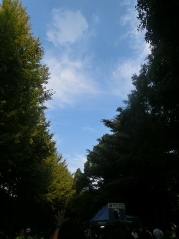 その色の変化でいつも季節を感じさせてくれるホームゴール裏待機列の銀杏の樹にはもう銀杏も。