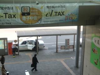 駅前、左前方に、ロ−ソンとマクドナルドがありますが、それからシダックスが写ってるところまでの間に4番のりばがあります。