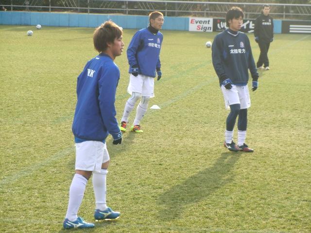 (江添選手と、愛媛からレンタルでやってきた吉川選手は後からグランドに現れたので、たぶんこの二名は怪我で別メニュー中だと思います)