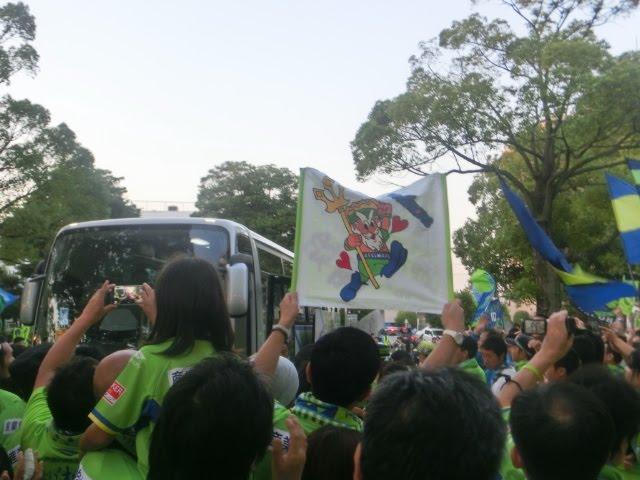 今季これまででいちばんサポーターが密集した勝利への花道&バス到着