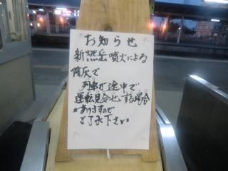 噴煙による降灰に気をつけて運転するよう電光掲示板に警報が出ていました。