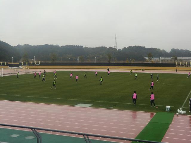 私が生目の森陸上競技場に到着した16時過ぎ頃はピンクと黄色のビブスに別れてボ−ルを使った練習中で
