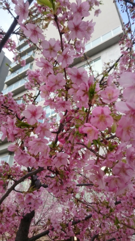 写真は…早咲きの桜です!オフィスビルに囲まれている小さな公園にひっそり咲いていました(*^^*)