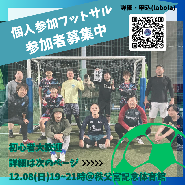 2024/12/08(日)開催決定!エンジョイ個人参加フットサル@神奈川県藤沢市