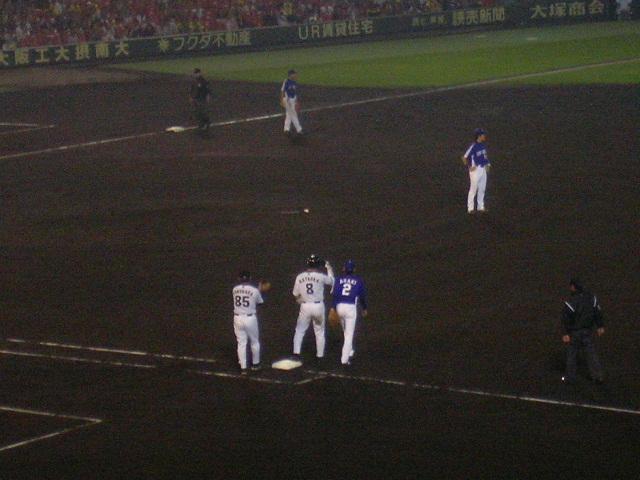 タイムリーを打ち1塁ベース上の片岡選手