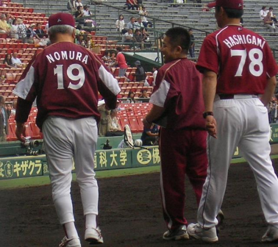 写真2枚目。断られ、ベンチに戻るノムさん(笑)