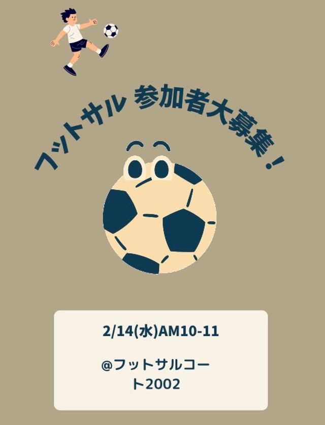 私たちと共にフットサルで汗を流し、楽しんでいただける仲間を広く募集しています。 練習は、毎週水曜日の午前10時から11時までが基本で、ほとんど初心者のの方ばかりで楽しく汗を流しています。フットサルを楽しみたい方、日頃の運動不足気になっている方などのご参加をお待ちしております。 1.参加資格 ・初心者、女性の方、学生さん大歓迎! ・経験者も大歓迎ですが、みんなが楽しめる配慮をお願いします。 ...もっと見る