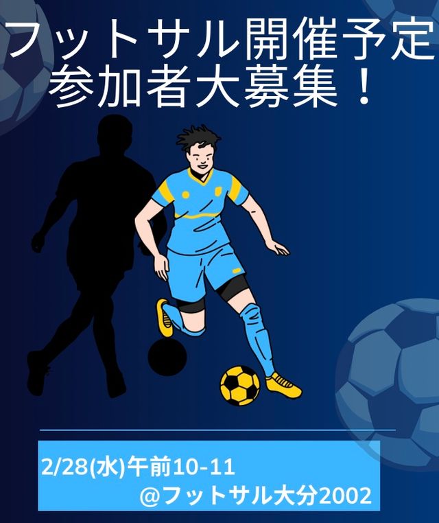 私たちと共にフットサルで汗を流し、楽しんでいただける仲間を広く募集しています。 練習は、毎週水曜日の午前10時から11時までが基本で、ほとんど初心者のの方ばかりで楽しく汗を流しています。フットサルを楽しみたい方、日頃の運動不足気になっている方などのご参加をお待ちしております。 1.参加資格 ・初心者、女性の方、学生さん大歓迎! ・経験者も大歓迎ですが、みんなが楽しめる配慮をお願いします。 ...もっと見る