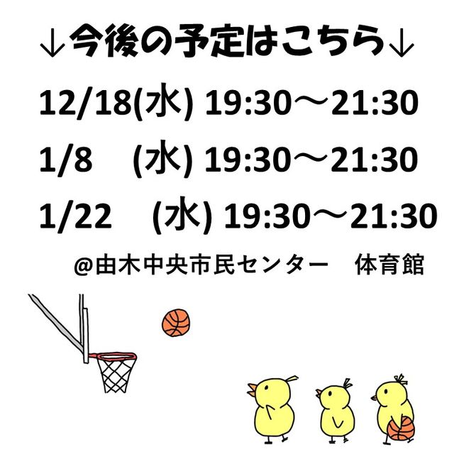 今回はゴール下とレイアップを集中的に練習しました😊次回は12/18水の19:30-21:30に開催予定です!隔週水曜日にバスケ未経験者向けに開催しておりますので、興味のある方はお気軽にDMください✨