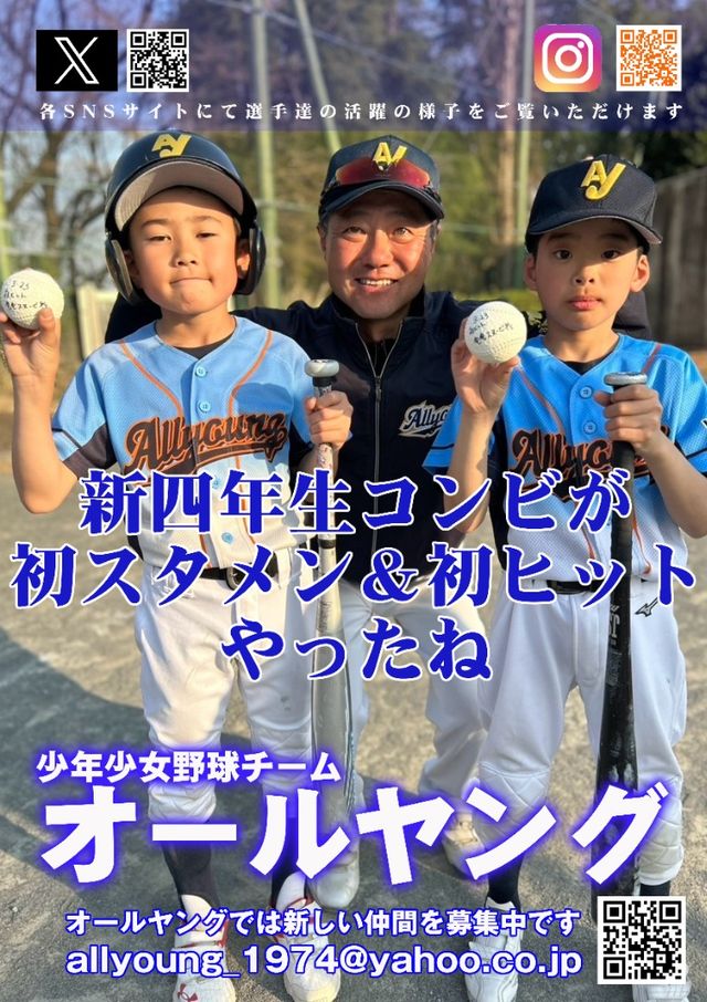少年・少女野球チーム「オールヤング」では、新しいメンバーを募集しています