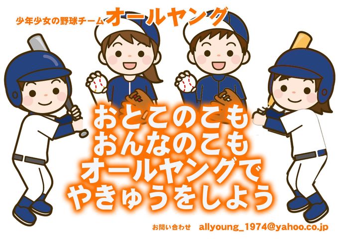 少年・少女野球チーム「オールヤング」では、新しいメンバーを募集しています