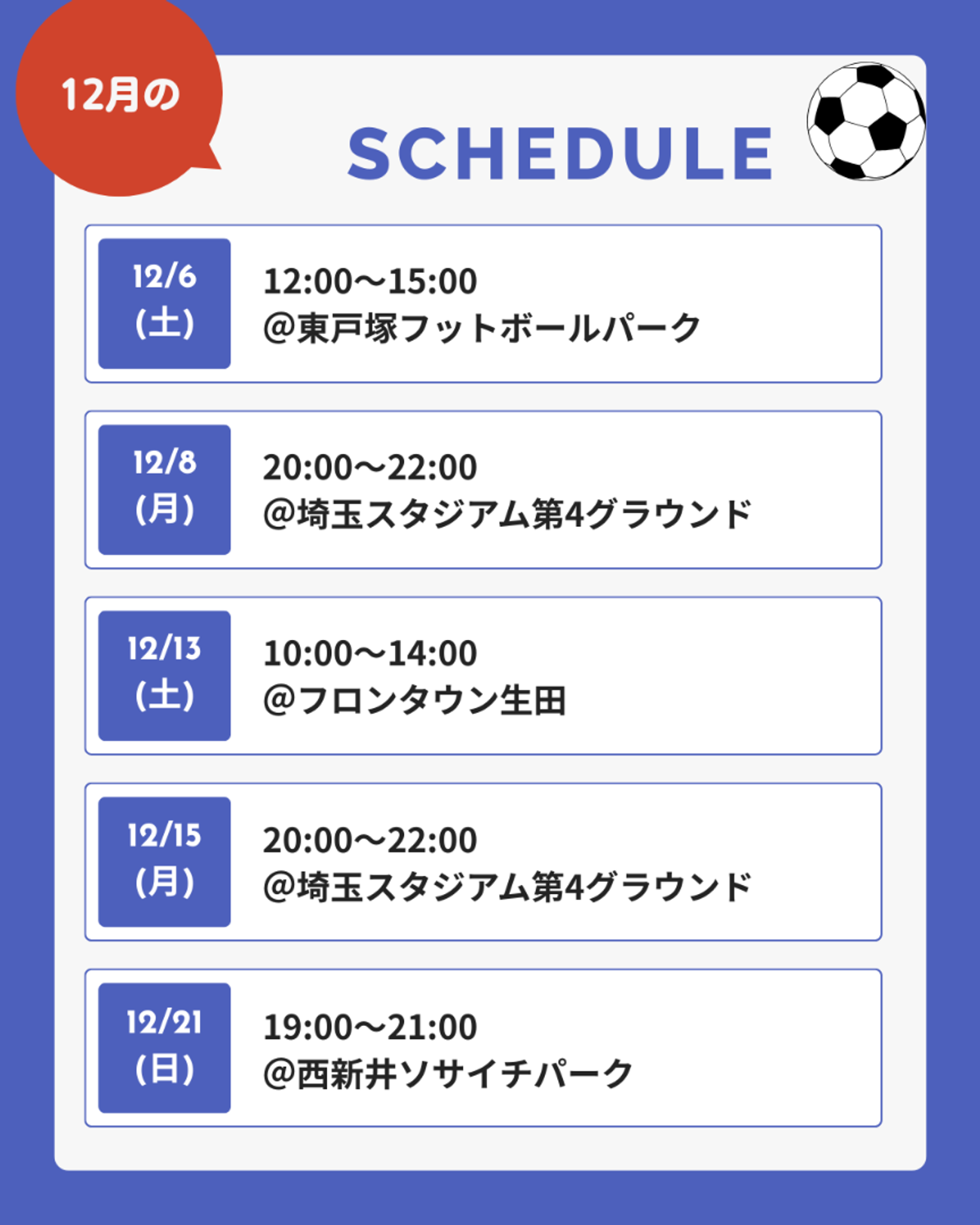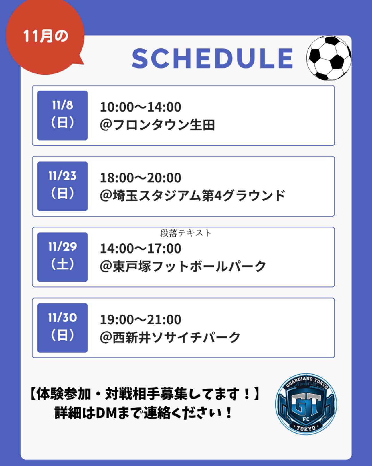 GUARDIANS FC TOKYOの11月と12月の練習・活動スケジュールをお知らせします🗓️✨
