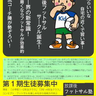 お世話になります、戸塚フットサル同好会からお知らせです。 小学生向けのサッカー教室です。 詳細 https://coubic.com/hamasal/booking_pages#pageContent ご興味ある方や、お知り合いの方がいましたら、以下メールまでご連絡頂けると助かります。 戸塚フットサル同好会 fctotuka@gmail.com ご家庭の近くの小学校で、もっと手軽にフットサルの楽しさを体験してもらえたらいいのになと、以前から感じており、今回『放課後フットサル教室』を開催する事になりました。 お子様にスポーツをする楽しさを小学生の頃から体験して頂き、その後、サッカーやフットサルまたはその他競技へと繋げられれば、幸いです。 また、コーチは10年以上の実績のあれコーチで、数多くのJリーガーを輩出しております。 基礎から楽しく学べ、プラス技術力も向上します! イイね!やシェア、大歓迎です! よろしくお願いいたします。 詳細 https://coubic.com/hamasal/booking_pages#pageContent 以下のような方にオススメです! ・現在、サッカーをしているお子様 ・サッカーやフットサルに興味はあるが、やった事がないお子様 ・家の近くで、スポーツを気軽に経験させたい 女の子や他の小学校の方でも、学校と関係のないフットサル同好会ですので、参加可能です。 よろしくお願いいたします。 @@@@@@@@@@@@@@@@@@@@@@@@@ 『放課後サッカー・フットサル教室』 お問い合わせ先 fctotuka@gmail.com