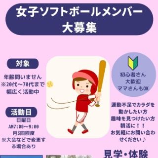 20代〜70代まで幅広い年齢の方が活動中♪ 運動不足解消!趣味!!朝活!!!などなど… 和気あいあいと楽しく行っております😊 試合や大会もあります! ご興味のある方はお気軽にメッセージください✨