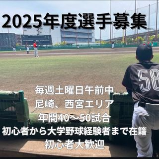 2022年4月から活動をしている 軟式クラブチームになります。 週1回土曜日活動をしており 活動場所は、主に西宮市、尼崎市で活動をしています。 今年度は、私設リーグと私設トーナメント1つづつ参加をしました。 年齢構成としては、 10代〜50代と幅広く 経験としては、 未経験から大学野球経験者まで幅広く在籍をしております。 人員補強の為今回メンバーを募集します。