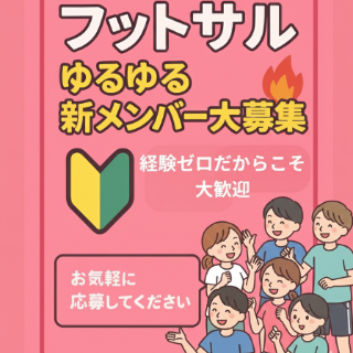 🌈 未経験・初心者だけのフットサルサークル 🌈 年齢や経験は関係なく誰でもゆるく楽しめる 23歳〜49歳まで、幅広い世代の社会人 が集まっています⚽ ✔ 未経験・初心者限定 ✔ 男女混合の社会人サークル ✔ スポーツ苦手でもOK ✔ ゆるくて優しい雰囲気 若い人も、年輩の人も、 世代を超えてパスをつなぎながら、 同じ時間を共有できるのが魅力です😊 職場とは関係ない交流は、良い息抜きにも◎ インドア気味の方が、定期的に体を動かす場としてもおすすめです。 🌟 ソロ参加OK 🌟 友人・知人と一緒の体験参加も歓迎 🌟 年に数回だけイベント交流あり 【活動について】 ・月1〜2回 ・土日どちらか(コート抽選制) ・参加費:500円〜800円 📩 応募はお早めに! 次回の体験参加日程をご案内します✨