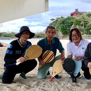 フレスコボールは、ブラジル生まれのスポーツで、ラケットでゴムのボールを打ち合い、ラリーを続けるスポーツです。相手を打ち負かすのではなく、相手の打ちやすいところにボールを返してあげるのが、このゲームの見どころで、思いやりのスポーツ、ゆいまーるのスポーツと呼ばれています。 本場ブラジルでは、8歳くらいから80代まで、幅広い世代で楽しまれています。運動が苦手な子にもお勧めです。 色々な人とペアを組み、助け合いながら、ラリーを成立させるので、幸福ホルモンのオキシトシンも分泌されます。 テニス、バドミントン経験者はもちろん、野球経験者も順応しやすく、運動経験がない方でも楽しんでいます。 毎週水曜日と土曜日は午後3時半から浦添市宮城の宮城公民館の地下広場で、毎週日曜日は午後3時半から、波の上ビーチ辻側の高架橋の下で開催。日陰で練習するので、日焼けが苦手な方にも安心です。 参加は無料、ラケットとボールは現地でお貸しします。