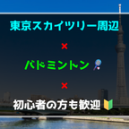 主に、東京都墨田区の、 東京スカイツリー周辺にある体育館での、 バドミントンに参加される方を男女募集しています🏸 比較的ゆるいバドミントンですので、 初心者の方、ご年配の方、外国の方、 どなたでも参加歓迎です🍀 ルールは分からなくても大丈夫です🏸 ルールは試合をしながら覚えてもらえればOKです👌 体育館はエアコン付きなので、夏でも快適です。 数に限りがある為、女性の方のみ、ラケットレンタル(無料)可能です。 持ち物は、屋内シューズと、 バドミントン参加の方は、ラケット(レンタルの方は不用)です。 夏場は、飲料水の持参をお勧めします。 現状、参加されている方々は、 10代~60代、初心者~上級者、 男女比は6:4~1:9で日により変動します。 毎回、初参加の方や初心者の方は参加されていますので、 どなたでも参加しやすい集まりです。 【参加申し込み】 http://splendour.o.oo7.jp/badminton_3.html 【LINEお問い合わせ先】 https://lin.ee/h8ez8ih
