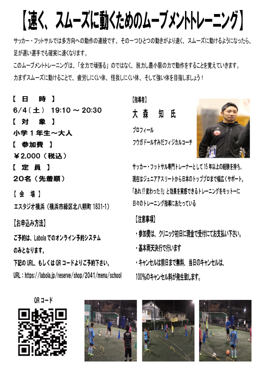 サッカー・フットサルは多方向への動作の連続です。ムーブメントトレーニングはその一つひとつの動きをスムーズにそして速くするためのトレーニングです。