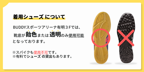 シューズの底が平らで飴色のノンマーキングシューズ(フットサルシューズ)のみ使用可能。