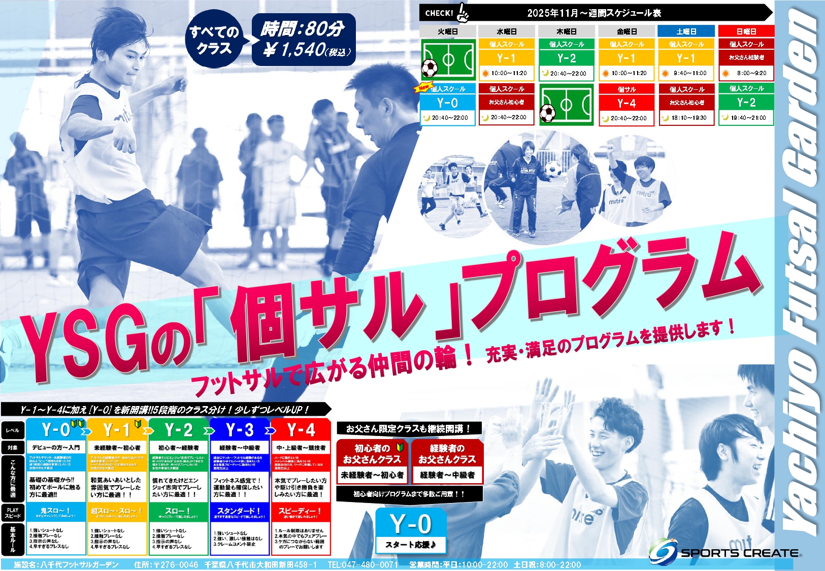 参加費(お一人様):880 円(対象:メンバー/ビジター) 家族割(ご家族2人目以降):660 円(対象:メンバー/ビジター) 個サル初参加:0 円(対象:メンバー/ビジター) ※Y-0、Y-1、Y-2は小学生以上(保護者が一緒に参加もしくは保護者見学の下)、Y-3、Y-4:高校生以上の参加条件とさせていただきます。