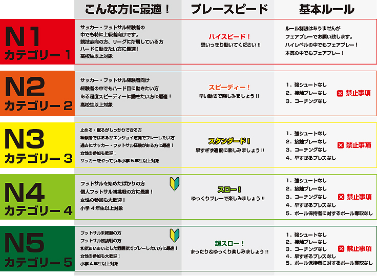 | キャンセル規約 | 開催1時間前 :無料 1時間前~プログラム開始まで:50% 無断キャンセル、プログラム開始後:100% 開催2時間前まではWEB上でのキャンセルが可能です。それ以降のキャンセルは店舗にご連絡下さい。 電話:048-424-3460 メール:infowakonarimasu@noah-futsal.com |