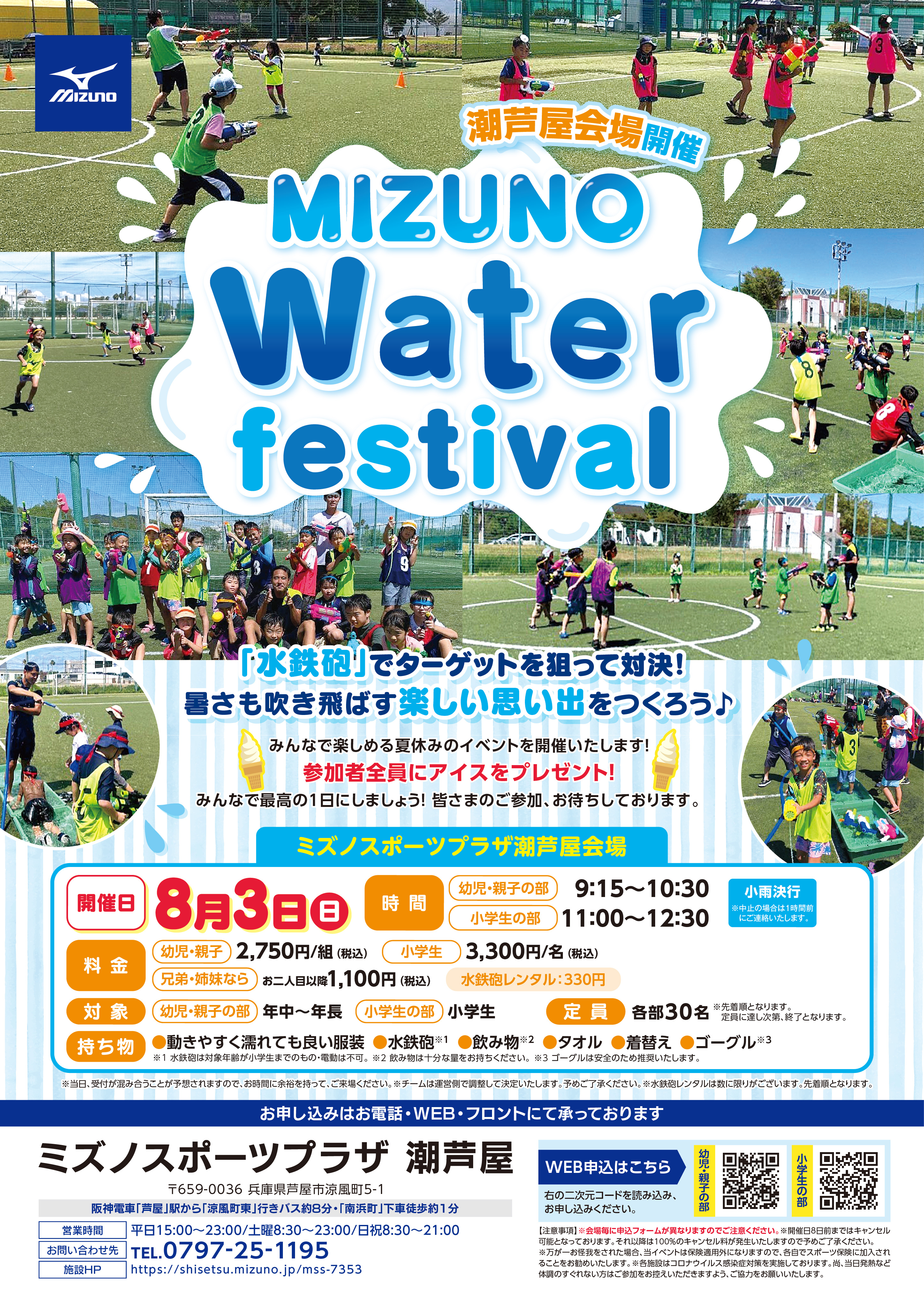 ◇持ち物:動きやすく濡れても良い服装/水鉄砲/飲み物(※十分な量をお持ち下さい。)/タオル/着替え/ゴーグル