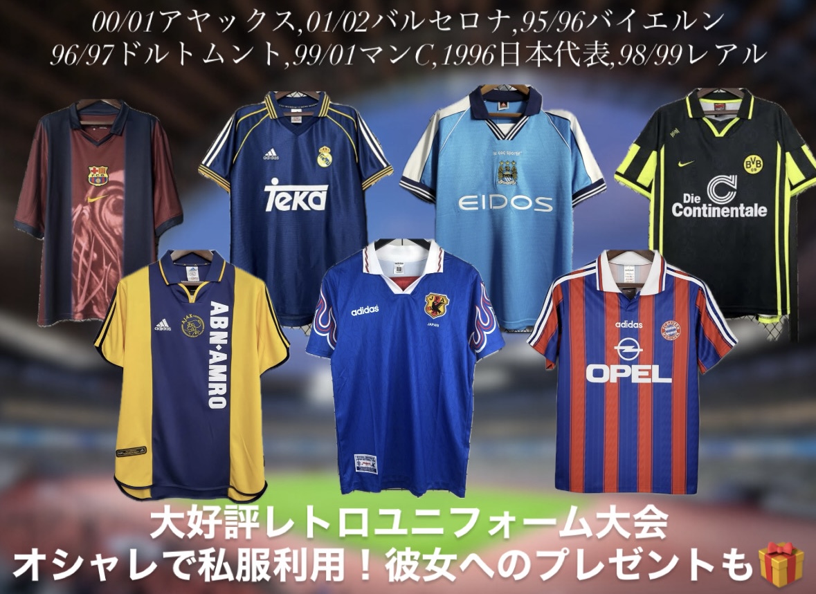 1位チーム→00/01アヤックス,00/01バルセロナ,95/96バイエルン,96/97日本代表,96/97ドルトムント,99/01マンチェスターC,98/99レアルマドリードのユニフォーム最大7枚