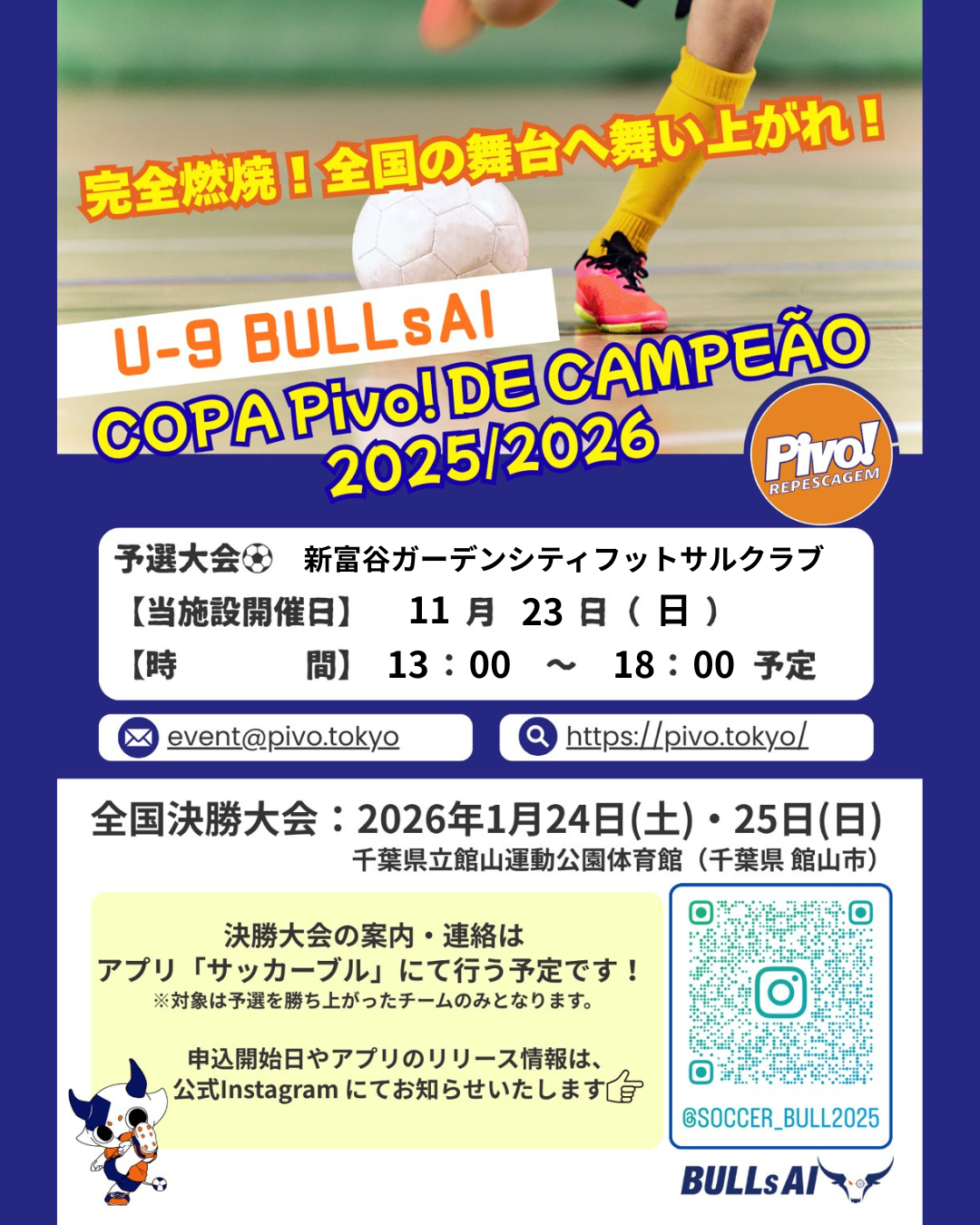 大会名: U-9 BULLSAI COPA Pivo! DE CAMPEÃO 2025/2026 (第9回)